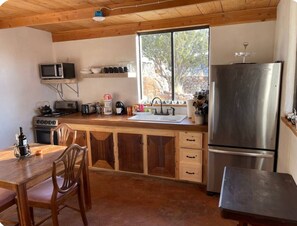 Title: La Bonita ~ Sweet Abiquiu Guest Cottage Reviews, Deals & Photos 2026 - Expedia.co.uk [See all properties](http://www.expedia.co.uk/Hotel-Search?regionId=&adults=2&children=&sort=RECOMMENDED&useRewards=false&semdtl=&userIntent=&vip=false) Entire home # La Bonita \~ Sweet Abiquiu Guest Cottage Cottage in Abiquiu with a hot tub ## Photo gallery for La Bonita \~ Sweet Abiquiu Guest Cottage ![Dining - La Bonita ~ Sweet Abiquiu Guest Cottage (Abiquiu)](https://images.trvl-media.com/lodging/117000000/116490000/116483500/116483494/0a9ce773.jpg?impolicy=resizecrop&rw=598&ra=fit) ![Living area - La Bonita ~ Sweet Abiquiu Guest Cottage (Abiquiu)](https://images.trvl-media.com/lodging/117000000/116490000/116483500/116483494/6c209ca4.jpg?impolicy=resizecrop&rw=297&ra=fit) ![Property grounds - La Bonita ~ Sweet Abiquiu Guest Cottage (Abiquiu)](https://images.trvl-media.com/lodging/117000000/116490000/116483500/116483494/1dd6cd91.jpg?impolicy=resizecrop&rw=297&ra=fit) ![Private kitchen - La Bonita ~ Sweet Abiquiu Guest Cottage (Abiquiu)](https://images.trvl-media.com/lodging/117000000/116490000/116483500/116483494/c4ae6dcf.jpg?impolicy=resizecrop&rw=297&ra=fit) ![Exterior - La Bonita ~ Sweet Abiquiu Guest Cottage (Abiquiu)](https://images.trvl-media.com/lodging/117000000/116490000/116483500/116483494/90b6359d.jpg?impolicy=resizecrop&rw=297&ra=fit) - Overview - Location - Amenities - Policies La Bonita \~ Sweet Abiquiu Guest Cottage provides a hot tub and more. Stay connected with in-room WiFi. ## Reviews 9.4 Exceptional ### Entire home 1 bedroom2 bathrooms ## Popular amenities - Hot tub - Pet-friendly - Air-conditioning - Parking available £210 includes taxes & fees 30 Dec - 31 Dec ## Add dates for prices Check-in Check-out Travellers ## About this property ### Entire place You'll have the entire cottage to yourself and will only share it with other guests in your party. ### La Bonita \~ Sweet Abiquiu Guest Cottage La Bonita \~ a welcoming Abiquiu Guest House in Georgia O'Keeffe country surrounded by stunning views of Cerro Pedernal and Sierra Negra. There's a full eat in kitchen and two additonal outdoor dining areas. One off the bedroom veranda and one off the downstairs kitchen entrance. Lounge in the upstairs living room with large picture windows to take in the scenery. Full bath features a deep Jacuzzi tub and a large shower. Large BR with a Queen mattress has a sitting area + door out to the veranda. The space Explore the beautiful Georgia O'keeffe countryside while staying in our sweet guest cottage. Plenty of activities for scenic nature lovers, photographers, hikers, artists, writers, families and kids. We're available to answer any questions you have about the area & things to do. Guest access The entire La Bonita guest cottage is available to you. Fully equipped with kitchen supplies for cooking, coffee and snacks. Linens are on the bed and towels provided in both bathrooms. Plenty of parking and don't forget the binoculars for stunning daytime views or evening stargazing ## Property amenities ### Pool/Spa - Hot tub ### Internet - Available in the cottage: WiFi ### Parking and transport - Parking on site ### Bedrooms - Bedroom - Bedsheets provided ### Bathroom - 1.5 bathrooms - Bathtub or shower - Hair dryer - Jetted bathtub - Soap - Toilet paper - Towels provided ### Comfort - Air conditioning - Heating ### Pets - Pet friendly - 3 pets total ### Suitability/Accessibility - Smoke-free property ### Services and conveniences - Iron/ironing board ### Safety features - Carbon monoxide detector (host has indicated there is a carbon monoxide detector on the property) - Smoke detector (host has indicated there is a smoke detector on the property) ## Similar properties ![Terrace/patio](https://images.trvl-media.com/lodging/85000000/84090000/84084600/84084561/3965ab23.jpg?impolicy=fcrop&w=469&h=201&p=1&q=medium) ### Glamping Studio Room Spectacular Lake Views Abiquiu Lake - Kitchen - Pet-friendly - Air-conditioning - Outdoor space 10 Exceptional 15 reviews £142 includes taxes & fees 29 Dec - 30 Dec [](https://www.expedia.co.uk/Hotel-Search?startDate=2025-12-29&endDate=2025-12-30&selected=84084561&PinnedHotelID=84084561&HadPinnedHotel=true®ionId=-1&adults=2) ![1 bedroom, wheelchair access](https://images.trvl-media.com/lodging/93000000/92460000/92452100/92452056/w1024h677x0y3-d85cd067.jpg?impolicy=fcrop&w=469&h=201&p=1&q=medium) ### Peaceful Suite in Desert Inn- San Juan Queen Room Ojo Caliente - Pet-friendly - Outdoor space - Fireplace 10 Exceptional 8 reviews £181 includes taxes & fees 5 Jan - 6 Jan 2026 [](https://www.expedia.co.uk/Hotel-Search?startDate=2026-01-05&endDate=2026-01-06&selected=92452056&PinnedHotelID=92452056&HadPinnedHotel=true®ionId=-1&adults=2) ![Terrace/patio](https://images.trvl-media.com/lodging/101000000/100200000/100193400/100193386/w906h683x59y0-5236dae8.jpg?impolicy=fcrop&w=469&h=201&p=1&q=medium) ### Casa Tocaya: Adobe Gem in O'Keeffe country! Abiquiu - Kitchen - Washing machine - Dryer - Pet-friendly 10 Exceptional 3 reviews [](https://www.expedia.co.uk/Hotel-Search?startDate=2026-01-11&endDate=2026-01-12&selected=100193386&PinnedHotelID=100193386&HadPinnedHotel=true®ionId=-1&adults=2) ![1 bedroom, iron/ironing board, free WiFi, bed sheets](https://images.trvl-media.com/lodging/93000000/92460000/92452100/92452058/w1024h679x0y2-b2771782.jpg?impolicy=fcrop&w=469&h=201&p=1&q=medium) ### Peaceful Suite in Desert Inn- Acoma Queen Room Ojo Caliente - Pet-friendly - Free Wi-Fi - Air-conditioning - Breakfast available 9.4 Exceptional 6 reviews £181 includes taxes & fees 4 Jan - 5 Jan 2026 [](https://www.expedia.co.uk/Hotel-Search?startDate=2026-01-04&endDate=2026-01-05&selected=92452058&PinnedHotelID=92452058&HadPinnedHotel=true®ionId=-1&adults=2) ![Exterior](https://images.trvl-media.com/lodging/101000000/100200000/100193400/100193371/w904h683x60y0-5cbd71f8.jpg?impolicy=fcrop&w=469&h=201&p=1&q=medium) ### Luscious Adobe Studio in Gorgeous Abiquiu! Abiquiu - Kitch