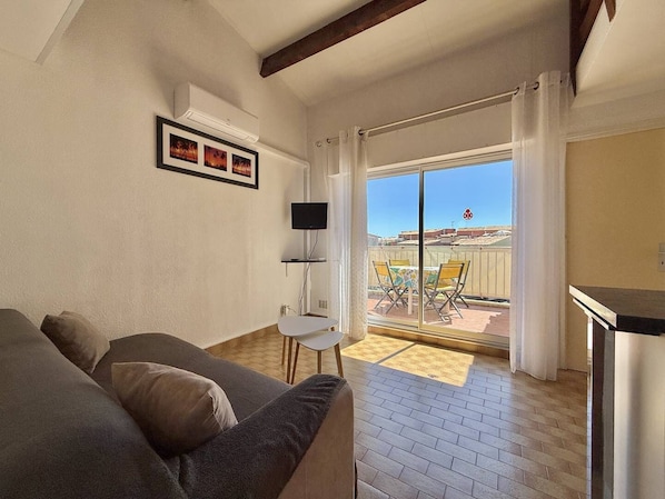 Pleasant terrace. Approximately 300m from the beach. In a secure residence with private parking (#276).