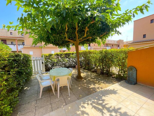 Outdoor dining - APPARTEMENT BIEN EQUIPE EN REZ DE JARDIN ENTRE PLAGE ET CENTRE PORT (Agde)
