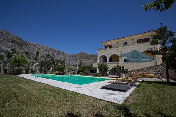 Our villa is suitable for relaxing, cycling , climbing , hiking , swimming , diving , in a very quiet and peaceful place. Alternatively , you can stay in our villa , admire the view while watching the children playing in the garden . We have our own traditional farm animals ( horses , goats , sheep , rabbits , cats and dogs) and our own organic crops trees and vines . Upon request you can have a ride on horseback or contact with nature , to see our animals and our traditional sectors and to taste our traditional products (wine , raki , olive oil , milk , eggs , cheese) .