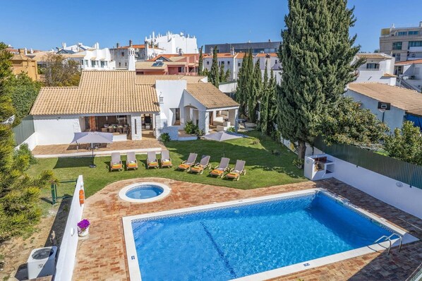 Located in a prime position in Praia D'Oura, Villa Osborne is a splendid 4 bedroom villa with a spacious outdoor area and an enticing pool terrace. Start your day with a refreshing dip in the pool or soak up the sun on the relaxing loungers - if the Portuguese sun becomes too hot, retreat to the shade thanks to the covered terrace. Just 10 minutes’ walk from the villa, feel the sand along the golden shores of Praia da Oura Beach, and indulge in the abundance of local restaurants, shops and bars at the lively Strip. WiFi, air conditioning/heating in the lounge and bedrooms and pool heating is included.