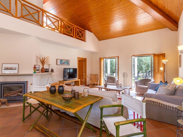 Large, luxurious "rustico" cottage "Villa 65- Refuge Villa". 102 houses in the resort. 14 km from the centre of Alcácer do Sal, 14 km from the centre of Comporta, in a secluded, quiet position, 16 km from the sea, 16 km from the beach, 1.6 km from the river, in the countryside, in the woods. For shared use: property 997 ha (fenced). Tennis (2 x hard court) (extra), basketball (extra), children's playground. Private: property (fenced), swimming pool angular (5 x 10 m, depth 110 - 190 cm, seasonal availability: 01.Jan. - 31.Dec.). Outdoor shower. In the complex: reception, WiFi, air conditioning, washing machine. Parking on the premises. Restaurant 2 km, bus stop 15.1 km, sandy beach "Praia da Comporta" 16 km, lake Herdade de Montalvo 50 m. Marina 31 km, golf course (18 hole) 30 km, tennis, riding stable, walking paths from the house 50 m. Nearby attractions: Comporta 16.2 km, Praia fluvial, da comporta 9.3 km, Estação Arqueológica de Abul 35.8 km, Tróia 30.1 km, Alcácer do Sal 14.4 km, Viveiro Florestal da Mata Nacional 16.8 km. Please note: car recommended. Suitable for families. 24hr guard. "65- Refuge Villa", 4-room villa 160 m2. Very cosy furnishings: living room with cable TV. 2 rooms, each room with 1 french bed (160 cm, length 200 cm), air conditioning and forced-air heating. 1 room with 2 beds (90 cm, length 200 cm), air conditioning and forced-air heating. Kitchen (4 hot plates, oven, dishwasher, microwave, freezer, electric coffee machine, Capsules for coffee machine (nespresso not incl)). 3 bathrooms. Upper floor: open sleeping alcove with sloping ceilings with 1 french bed (160 cm, length 200 cm). Terrace furniture, barbecue, sitting area. View of the swimming pool and the garden. Facilities: washing machine, iron, children's high chair, baby cot for up to 2 year olds, hair dryer. Internet (WiFi, free). Parking at the house. Please note: suitable for families. Fire extinguisher. Instead of an enclosed bedroom, some sleeping areas are located in an open-plan area (gallery, alcove, etc.). 89/AL