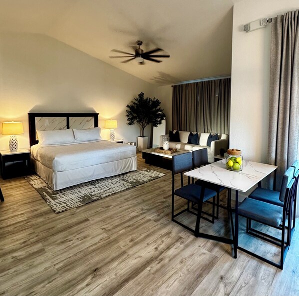 All guest rooms at Sunshine studio villa optional gull car rental offer thoughtful touches, such as air conditioning and separate dining areas, as well as amenities, such as free WiFi and dining tables.