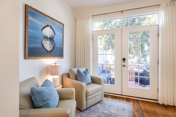 Cozy living room opening to outdoor space
