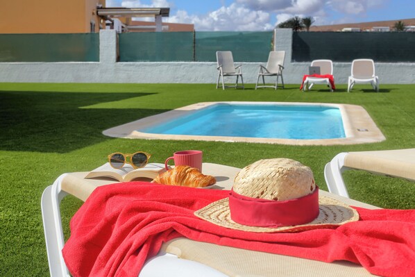 Villa with heated pool & great outside space, 15 minutes walk to Marina Rubicon