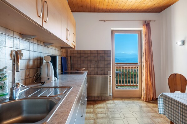 With a view of the Alps, the holiday apartment Petra with step-free interior in Appiano is perfect for a relaxing holiday. The 67 m² property consists of a living room, a kitchen, 2 bedrooms and 1 bathroom and can therefore accommodate 4 people. Additional amenities include high-speed Wi-Fi (suitable for video calls), a TV as well as children's books and toys. In addition, a table tennis table is available for your use. A baby cot and a high chair are also available. This vacation rental features a private balcony for your evening relaxation.