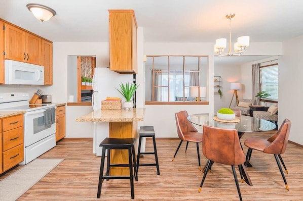 North of Appleton, this charming house offers a cozy retreat with professionally curated decor and brand new super comfortable beds. With a 55-inch smart TV in the living room, spacious bedrooms featuring a 40-inch smart TV in the master, and free laundry access for longer stays.