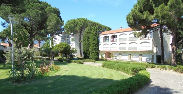 In a wooded park of 3ha, swimming pools, tennis, about 250m from the beach, near the shops, in a very pleasant area, public parking free all around the residence . The DELFIN VERDE building is located on Avenue du Tech