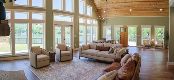 From the moment you arrive, you’ll be greeted with breathtaking water views, expansive indoor and outdoor living spaces, and easy access to the lake—just 12 steps to your private swim pier.
