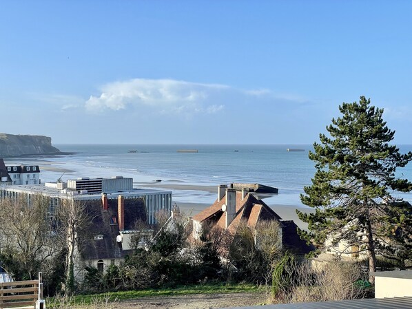 The newly renovated "Bellavista" apartment #2 in Arromanches offers breathtaking views of the artificial harbor and the D-Day landing beaches. With a terrace and just a 3-minute walk to the sea, it is fully equipped for a comfortable stay. Close to Bayeux, it blends modern amenities with historical charm, providing a complete experience with shops, restaurants, and attractions nearby.