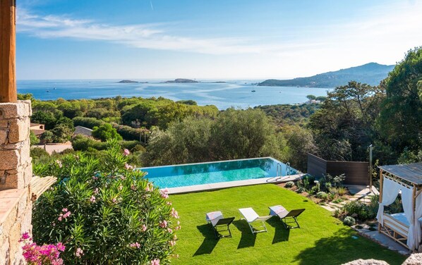- Private infinity swimming pool (23.8m x 4m, max depth: 1.4m) Open approximately beginning-May to end-October- Sun loungers- Outdoor shower - Outdoor dining table and lounge seating- Pergola covered day bed - Decked terrace- Manicured lawned gardens- Barbecue - Parking-Table tennis