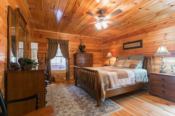 Escape to Highrock Acres, a charming log cabin nestled among 25 acres of nature-filled property. Unwind by the bonfire pit or relax on the large covered deck with a jacuzzi and gas grill overlooking the pond’s lighted fountain. The comforts of home include two bedrooms, two baths, and an equipped kitchen.