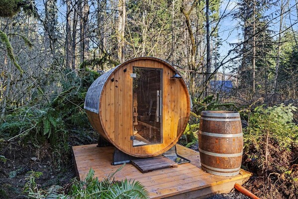 Red Deer Cabin Hot tub Sauna Outdoor Shower provides amenities, such as a garden and a sauna.