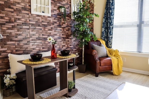 Nestled near central Atlanta and historic Morehouse and Spelman College, this cottage-styled condo offers a peaceful atmosphere with the convenience of downtown proximity. Enjoy local artwork from Atlanta's finest artists adorning the walls, which are also available for purchase to support the community.