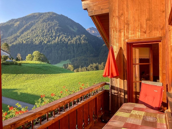 NEW: Sauna with different types of bathingIn a beautiful cozy and cozy wooden house in beautiful Schoppernau is a little paradise for your next vacation. In addition to a lot of nature and in a relaxing peace, you can really enjoy your holiday with your family in a family atmosphere. Our house is located in the countryside on the southern slope of Schoppernau, with a beautiful view of the surrounding mountains. Playhouses, table tennis, swing, darts, table football and a small library are at your disposal. From three nights you will receive free of charge the Inclusive Card Bregenzerwald, with which you can use all public transport in the Bregenz Forest free of charge. Visit swimming pools, cable cars, museums, etc. for free. Just as the Bregenzerwald is known as one of the most beautiful hiking regions in Europe, it also offers winter sports enthusiasts so much. Cross-country skiing, tobogganing, skiing, touring or snowboarding - the Bregezerwald has something for everyone, which needs no comparison. It's best to call us today or email us your special request. For short-term bookings (up to three days before the arrival date) we grant you a last minute discount of 5% on the normal price. We look forward to you. Your family Beer