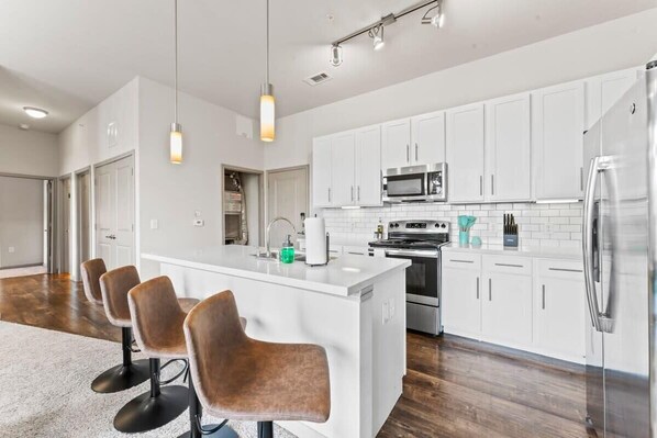 Fridge, microwave, oven, stovetop - Airy 2BR king suite, fast WiFi, 8 min to Downtown (Austin)