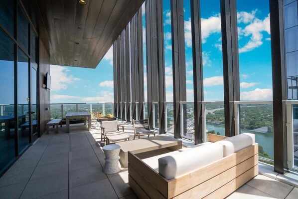 The common areas of the complex soar with style including stunning native design elements, and local touches of Austin culture. The first floor lobby and coffee bar/lounge provides a gathering place for collaborative workspace or a trendy venue for friends to mingle.