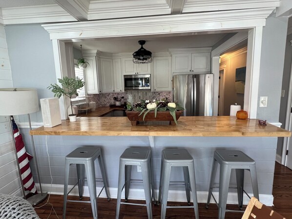 Enjoy the off season at our beautifully designed and renovated bay-front home. With 3 bedrooms, you can sleep up to 8. 1 block away from the center of town! 3 blocks from the beach! Perfect for a weekend getaway! The bay and ocean are beautiful at this time of the year!