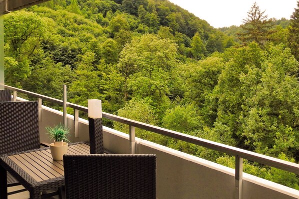 Alles da.Die Küche ist umfangreich ausgestattet.Im Bad fehlt nichts.Gute Unterhalungselektronik.Balkon mit herrlicher Aussicht in die Natur des Harzes.