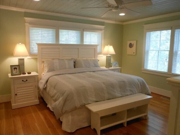 Large five bedroom, professionally decorated maritime forest home. Home features a gourmet kitchen, reverse floor plan, large open Living room/kitchen/dining room. Fireplace. Sun room. Wrap around covered porches and open porches to soak up the sun! Close to Maritime market, Spa, Shops and South Beach. It's a perfect beach house, close to all the amenities.