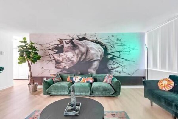 Escape to a jungle-inspired retreat where relaxation meets fun. Enjoy spacious comfort with the whole group and indulge in free high-speed WiFi, Netflix, and Amazon movies. Unwind with Meta Quest 2 games or groove to Sonos Move's Alexa beats.