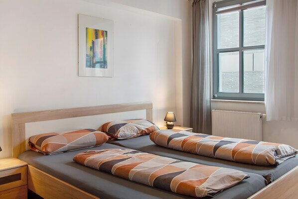 The holiday apartment Alte Stadtmauer in Bamberg is the ideal accommodation for a relaxing holiday with your loved ones. The two-storey apartment features a kitchen, two bedrooms, and a bathroom, and accommodates up to four people. Amenities include free Wi-Fi, a TV in each bedroom, as well as a baby cot and two high chairs.