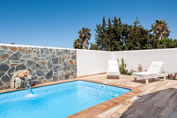 On a fenced property in the quiet, idyllic village of Zahora, the vacation home Casa 3 - Mar y Sol offers the perfectly relaxing holiday experience not far from the breathtaking white sands of the coast. The holiday home consists of a living room with rustic, wooden roof beams, a well-equipped kitchen, 2 bedrooms (one with 2 single beds) as well as one bathroom and can therefore accommodate 4 people. Additional amenities include Wi-Fi, television and a washing machine. Air conditioning is located only in the living room but cools the entire property. There are also fans in the bedrooms. Outside, guests can enjoy the tranquility of the lush lawn from their covered patio, equipped with a generous dining table, and savour fresh meals together. Starting in February 2019, you can also enjoy the generous, private pool (available from April to October), where you can sunbathe and refresh yourself in absolute privacy. The closest beach, Playa de Zahora, is about a 6-minute drive or 1.7 km away and at the same distance to the south you will find the stunning sights of Cape Trafalgar. While a selection of restaurants and cafes are located by Zahora beach, a larger array of shops can be found along “Trafalgar avenue”, which is a 5-minute drive or 2.6 km away.
