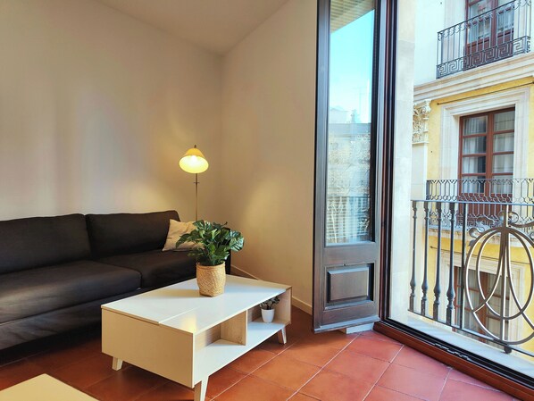 C'est un joli petit appartement, doté de toutes les commodités et très bien situé (sur la Rambla). Climatisé et avec des fenêtres à double vitrage on ne souffre ni du bruit ni de la chaleur en été. Je le recommande aux familles et aux jeunes couples.