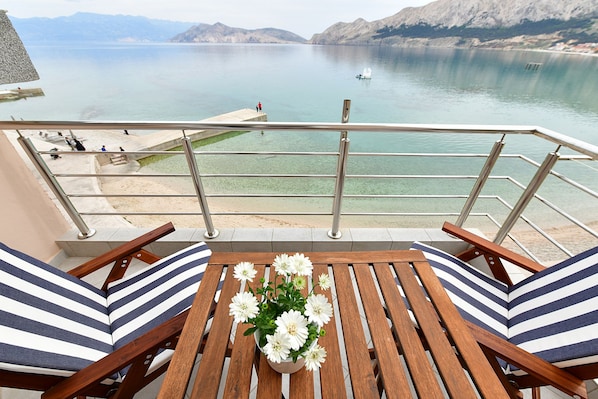 Holiday apartment overlooking the beach and the sea provides everything that you need. Stay connected with in-room WiFi.