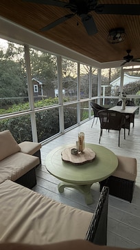 Everything about our stay at Pollock cottage was top notch. The house was spotless, and stocked with what we needed-no need to run to the store for household staples. There were even some extra treats. Everything in the house was clearly labeled and there was a guest book which suggested restaurants and local activities. Dog friendly? For sure. We brought our Australian Shepherd. There were crates, a fenced yard, and clean up supplies. Best of all it did not have a dog odor. I wondered about that when we booked. Our host, Landie, was welcoming, answered questions before our trip and messaged us to make sure we arrived safely. She said she was available to answer any question or concerns if needed. Very friendly. Lastly, the cottage is adorable, a quick walk into town and a short drive to the beach. And the screened in porch was our favorite for reading, cocktails, and a late lunch. My husband and I can’t recommend this property enough and hope to return next year. Great choice for your trip to Beaufort. Susan and Pat Carney