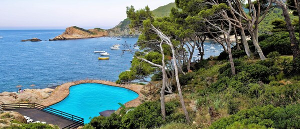 Guests can reach the sea and pool via a private elevator carved into the rock or walk through the gardens of the resort.