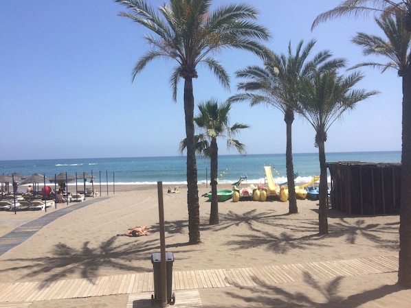 (+) Walking distance to the sea - so close Walking distance to the supermarket for food shopping Very clean flat (Polish standard !) Very spatious terrasse for breakfast or simply chilling out Easy access to the garden and the pool from the terrasse (one door at the same level) Washing machine works well Close to the Malaga airport by taxi (20-30min) Very friendly Polish owner Secure property (gates need key from inside and outside) - so kids can play around without exiting the property Value for money price (-) None