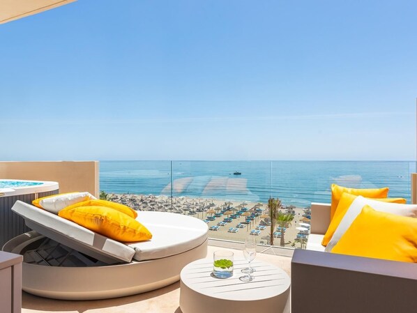 It has a double bedroom with en-suite bathroom, fully equipped open plan kitchen. In the living room you will enjoy amazing panoramic views and a flat screen TV. The terrace has a chill out area, jacuzzi and spectacular views, all our amenities are Rituals Brand.