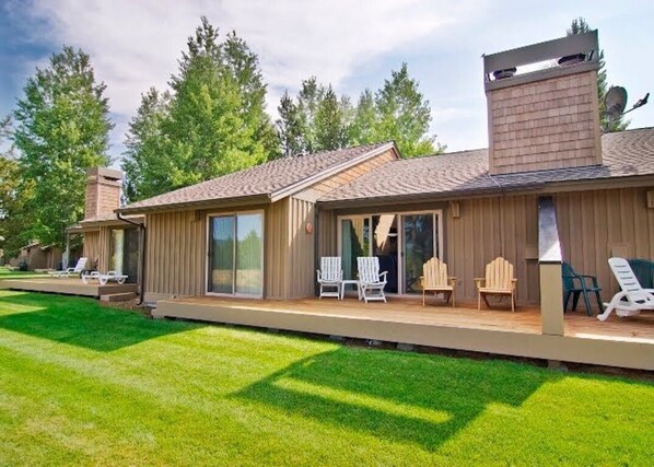 Front patio with table, chairs and umbrella and a gas BBQ. Our condo is "Super" clean, as we have the best housekeeper in Sunriver.
