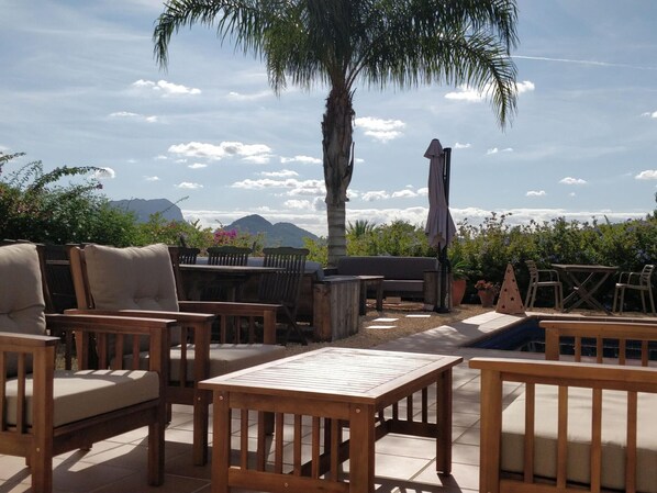 Beautiful villa with a private pool and mountain views in Beniarbeig. The fully equipped villa has 2 bedrooms, 1 double bed and 2 single beds, and a spacious, very comfortable living-dining room. Tastefully decorated, you can enjoy a covered terrace next to the pool. It has 2 bathrooms with showers and a private entrance with a garden and private parking. The open-plan kitchen is fully equipped. It is the perfect option for a relaxing family vacation.