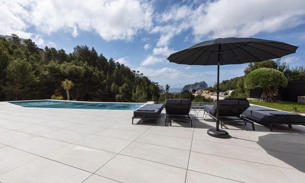 Elegant villa with panoramic sea views. Swimming pool, jacuzzi, BBQ.