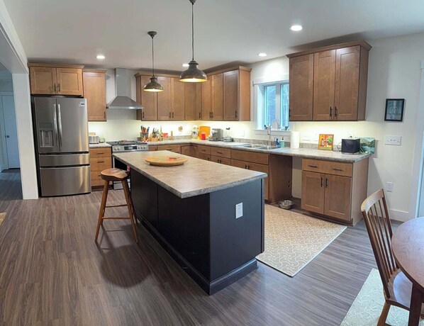 Discover the beauty of the Bethel area from this brand new 3-bedroom house. Inside, guests find a king bed, a full bed, and a twin bed, plus a cozy sofa bed in the living room for extra sleeping space. Nestle up in the living room next to the pellet stove, it is so warm and inviting. With two bathrooms, getting ready for any activity is a breeze. This marvelous space offers plenty of room to unwind after a day of exploring. Kick back, relax, and enjoy everything Bethel and our superb house has to offer. Minutes in every direction to skiing, hiking, fishing and so much more. Public boat launch on the Androscoggin River for kayaking and canoeing within 4 miles. Just a 20 minute drive to NH were there are endless ATV / UTV trails in the summer and fall. Snow machine trails within just a few miles.
