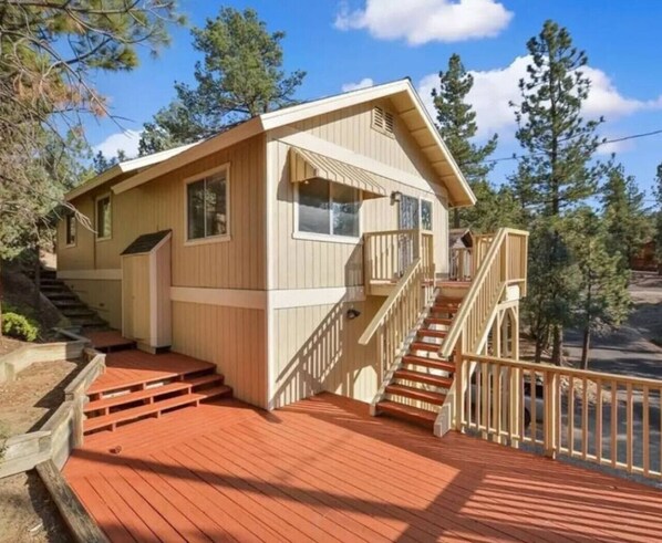 The Bear Hug Hollow is an authentic mountain house located on the edge of the National Forest. It is suitable for the most adventurous guests looking for local flavor and real Big Bear experience. The cabin is around 2200 square feet with a variety of outdoor spaces so you'll have plenty of space to unwind.