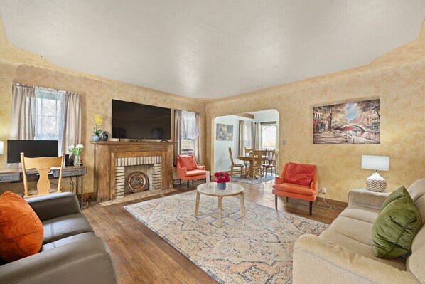 Nestled in a quiet neighborhood, this cozy 5 bedroom unit welcomes you to unwind. With its large kitchen equipped with a Keurig coffee machine and utensils, spacious bedrooms with Queen beds, and smart TV for entertainment in the living/dining room, this home away from home is perfect for relaxation.