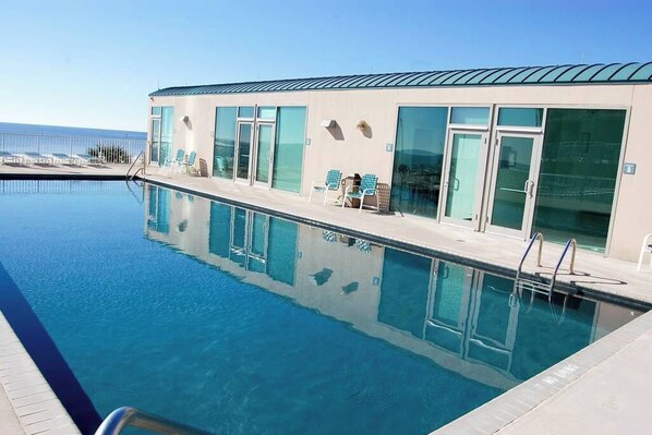 There are two pools and a very nice Fitness Facility for your use. The pools are accessible from the 2nd floor and there are easy steps down to the sand beach and to the barbecue grills, should you want to grill the catch of the day from your charter fishing trip!