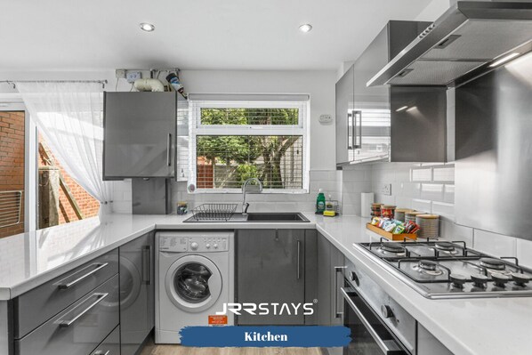 In a quiet Wolverhampton cul de sac, this 3-bedroom house offers a perfect blend of comfort and convenience for contractors and groups. With fast WiFi, Smart TV in the lounge, fully stocked kitchen with tea/coffee/sugar/milk provided, fresh linen & towels and complimentary toiletries.