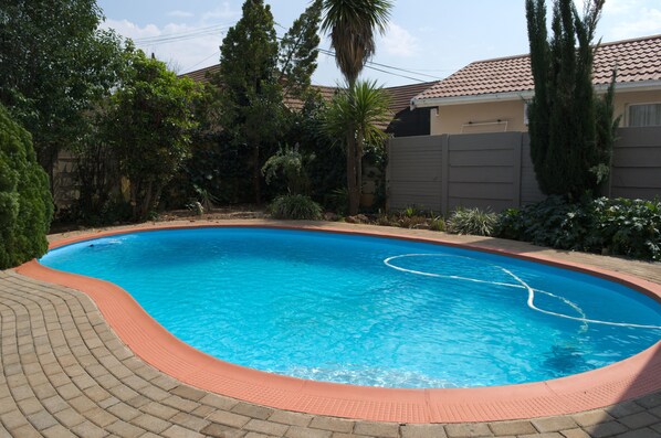 Travelers find tranquility at Pebble Fountain Guesthouse in Fichardt Park. Enjoy an outdoor pool, kids' pool, garden, free WiFi, and BBQ grills for family and couples' meals.