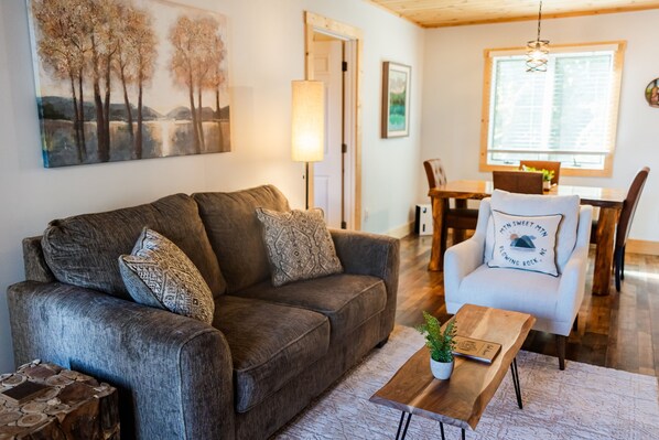 Nestled in the heart of downtown Blowing Rock, Oak Haven offers a charming retreat. Stroll to Main Street and enjoy nearby attractions like Appalachian Ski Mountain and Bass Lake. Unwind in this beautifully renovated condo featuring a rustic modern aesthetic with wood accents, stone fireplace, private balcony seating for two.
