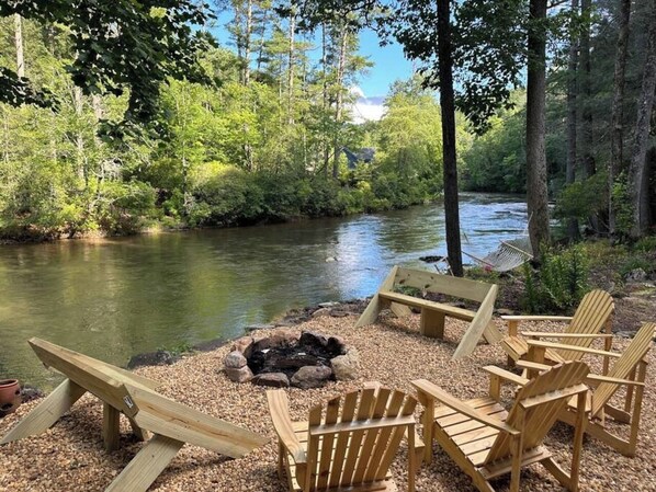 This was the perfect place for us. My husband and kids loved the fishing right outside the back door. They caught lots of trout while I laid in the hammock and read my book! The house was so comfortable. Good phone signal and WiFi. Nice TVs, gaming system, board games, and plenty of comfy seating. Kitchen had everything we needed. Outdoor dining areas were comfortable. Fire pit between house and river was great. Overall awesome week.