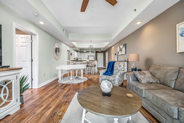 Our condo boasts a modern and stylish interior, with all the amenities you need for a comfortable stay. The spacious living area is perfect for relaxing after a day at the track, and the fully equipped kitchen has everything you need to cook up a delicious meal.