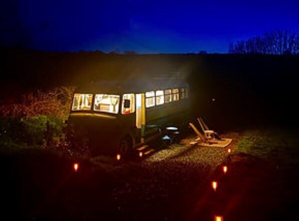 Welcome to Betty, a charming 1954 Bedford R conversion nestled in the lower end of the paddock. With commanding views of the local countryside from every angle, enjoy a kingsize bed and ample seating areas both inside and out.