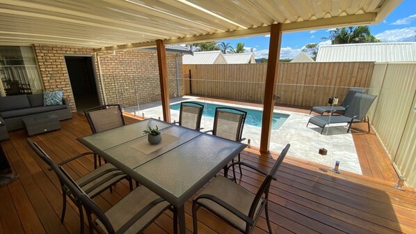 Cook up a storm in the well-equipped kitchen complete with great bench space, ample storage and a suite of quality appliances including dishwasher. The free-flowing floorplan is ideal for entertaining with direct access out to the expansive covered deck where you can unwind in the shade & sip afternoon cocktails overlooking the sparkling in-ground pool.