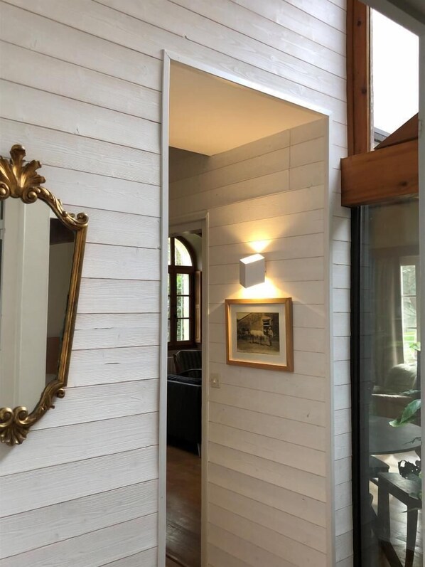 You will stay in the former 18th-century chapel, a private, independent property surrounded by 1.5 hectares, overlooking a landscaped 6-hectare park. You can visit Château Vacquey, built in the 18th century by Victor Louis, architect of the Grand Théâtre de Bordeaux. Admire its magnificent view overlooking this park and its centuries-old trees. The secluded château houses a retirement home and was owned by Gustave Eiffel in the 19th century. He came to supervise the construction of the two bridges over the Dordogne at Saint-André-de-Cubzac. It was then that he added a first floor and a belvedere to this former charterhouse to create his office. Teynac Golf Course and its restaurant are 5 km away, with introductory lessons available. Tennis is 2 km away. The Gîte de la "Chapelle" welcomes you in an authentic setting, furnished with antique pieces and featuring a fireplace insert for your cozy evenings. On the south side, enjoy a beautiful shaded terrace, perfect for al fresco dining. Six adult bicycles are also available free of charge upon request from the owner for exploring the surrounding area. Inside, you'll find a functional kitchen opening onto a living/dining room, a pleasant interior patio, and three bedrooms (two double beds and two single beds). The bathroom is equipped with a walk-in shower, and the wall-mounted toilet is separate. The cottage has city gas central heating. Optional: rental of sheets, towels, and kitchen linens. End-of-stay cleaning is available (€30/hour), but the cottage must be left clean in all cases. Rentals reserved exclusively for private individuals. Gas for cooking (if the hob works with this energy), water within the limits of reasonable consumption, a fixed price of 8 kWh/day of electricity.