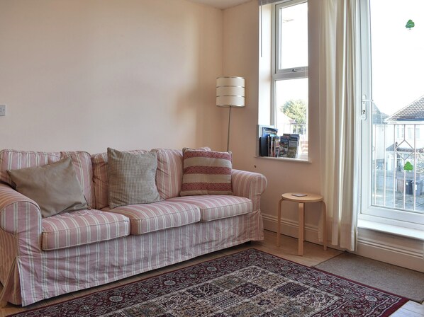 Just 50 yards from the cliff top and sandy beach this first floor apartment offers an ideal base for exploring the area.. All on the First Floor: