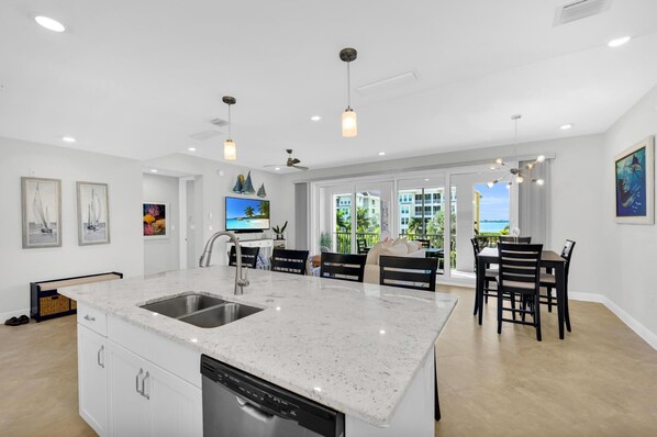We had a wonderful week enjoying AMI, its beaches, restaurants, and our beautiful condo. Our hosts were wonderful, giving good directions to access the property, very timely with communications, kind in brining us items to use on the beach and games for the condo. The home is luxurious, appearing new. A favorite feature was the sliding glass wall that we opened in the mornings for breakfast on the patio, and having morning coffee watching the fishermen on the AMi sound. The 2nd story view of the pool and landscape is a bonus. Each day we drove to one of the AMi beaches, and but for one day where a large sailboat caused the drawbridge to rise, it was a short and scenic ride. The home was perfect for us to decompress, enjoy the beautiful Florida scenery, and have family time. Next time we are in AMI, we hope to find availability with the Perry’s again!